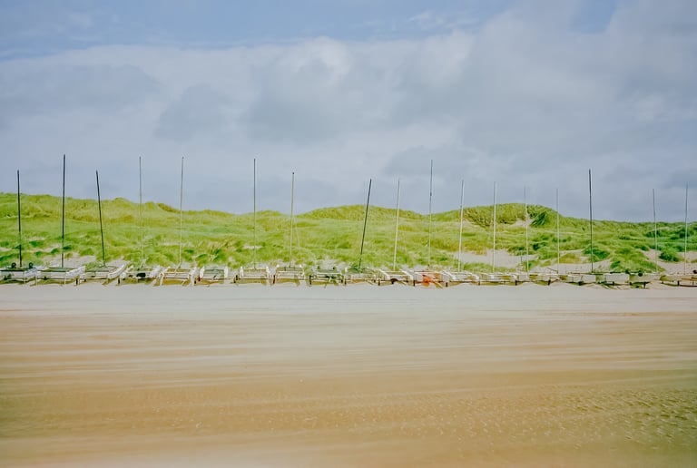 Picturesque panoramic views of the summer ease at the beach in Bergen aan Zee, Netherlands and of Lisbon, Portugal, etc.